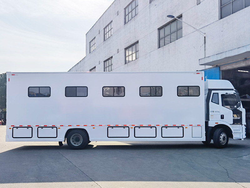 | 側窗 | 房車級別雙層鋼化玻璃窗戶,馬區(qū)域尺寸500*1200,人員區(qū)域尺寸略小一些,茶色,含防止馬頭探出不銹鋼防護欄 |