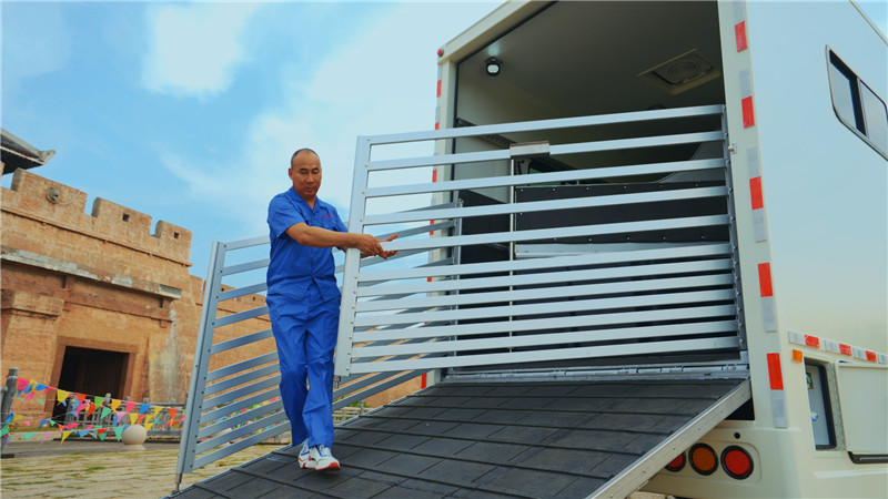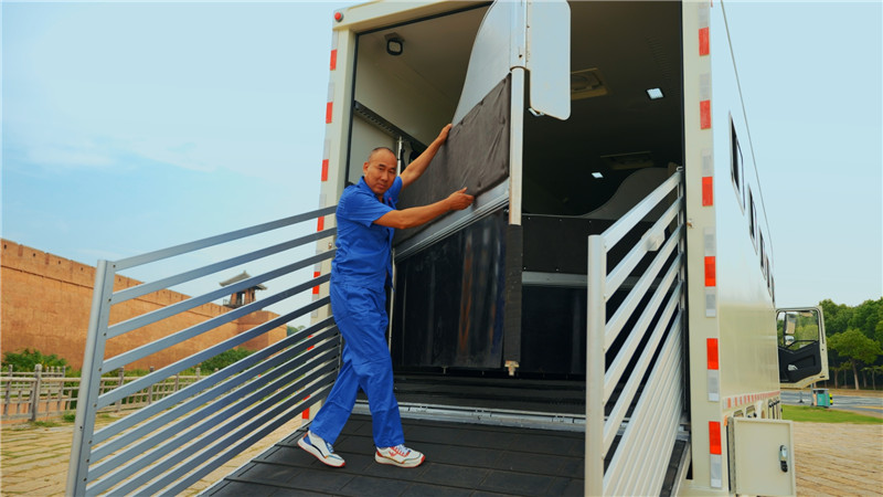 | 液壓門系統(tǒng) | 天順牌產品:液壓后翻門,采用延時電機,帶緊急手動操作裝置,箱體尾部有液壓升降踏板,方便馬匹上下(內部鋁合金),軍用品質液壓系統(tǒng)(海格曼),坡度平緩 |