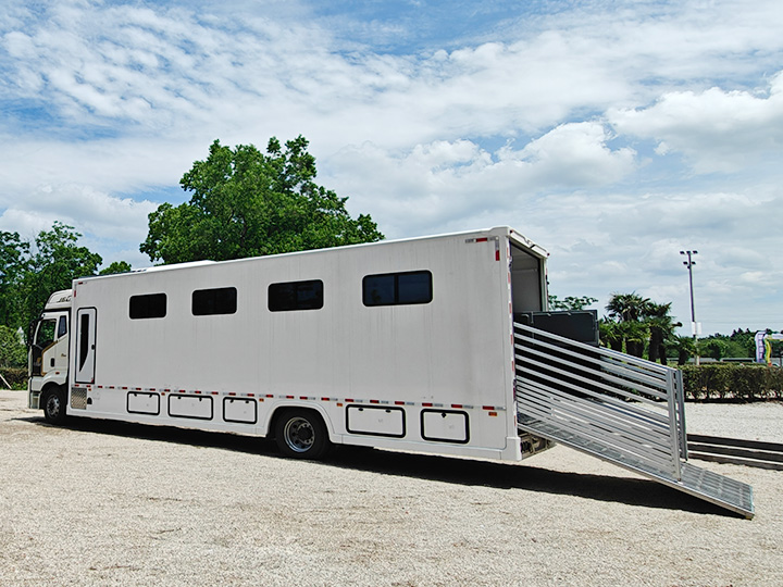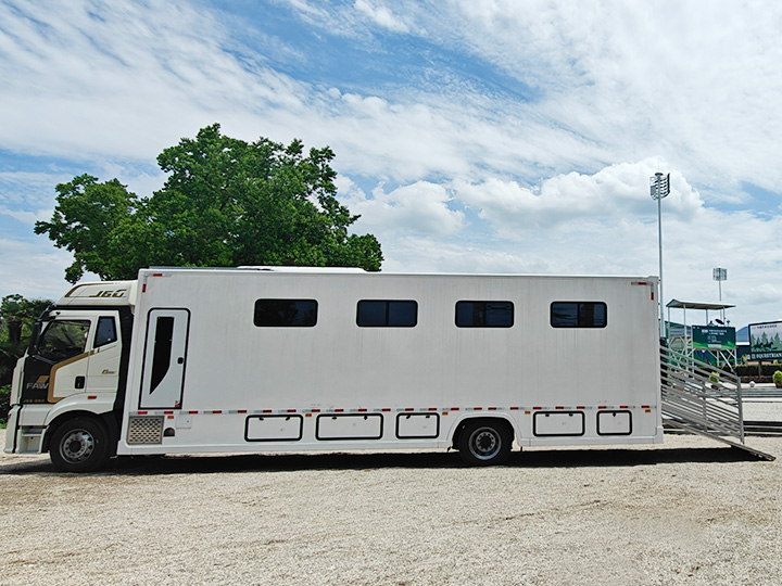 | 箱體骨架 | 天順牌,馬匹斜載,內外玻璃鋼,長度9.7米,房車級別設計,線條,燈光圓潤美觀,如果前部區(qū)域縮小,可以設計增加一個馬位 |